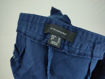 Spodnie damskie Atmosphere w kolorze granatowym, z prostymi nogawkami. Zapinane na zamek błyskawiczny i guzik, z dwoma guzikami ozdobnymi na pasie. Posiadają dwie kieszenie boczne. Wykonane z miesz...