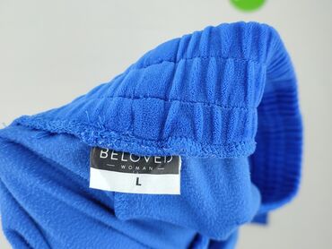 Jasnoniebieskie spodnie damskie z wiskozy (100% viscose). Luźny, komfortowy krój typu jogger: - elastyczny pas z marszczeniem i sznurkiem do regulacji - dwie kieszenie po bokach z przodu, jedna kie...