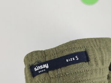 Beżowe spodnie dresowe Sinsay – rozmiar S - Krój: joggery z mankietami na dole - Talia: elastyczna guma + sznurek do regulacji - Kieszenie: dwie skośne przy biodrach oraz kieszenie typu cargo na n...