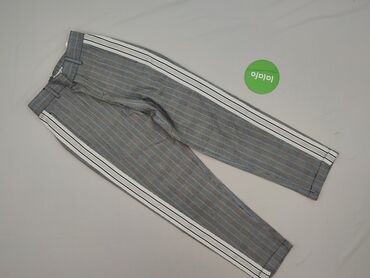 Spodnie damskie Sinsay – rozmiar XS - Wzór: klasyczna krata w odcieniach szarości, granatu i błękitu - Krój: prosta, zwężana nogawka - Stan: wysoki/średni, komfortowa gumka w pasie + szlufki na pa...