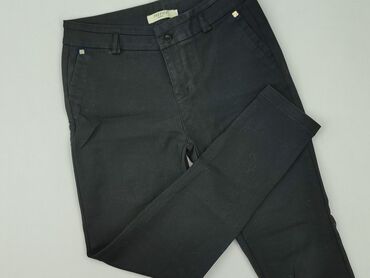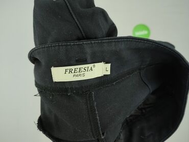 Spodnie damskie FREESIA Collection, rozmiar L. - Krój: dopasowane nogawki, średni stan. - Wzór: czarno-biały, geometryczny print na całej powierzchni. - Zapięcie: guzik z przodu plus suwak (widocz...