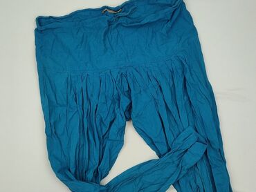 Luźne, szerokie spodnie typu harem/allaadin w kolorze jasnego błękitu. - Krój: bardzo szerokie nogawki zwężane przy kostkach, obniżony krok (haremki). - Talia: elastyczna, marszczona – dopasowuje ...Stan: