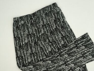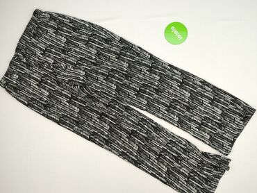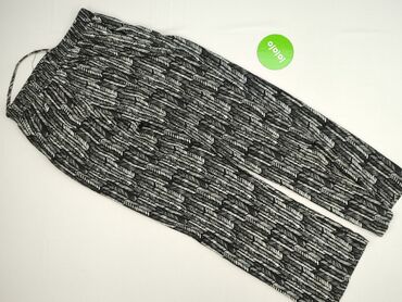 Damskie spodnie wide leg z nadrukiem geometrycznym - Rozmiar: XL (na metce) - Materiał: 100% poliester - Kolor/wzór: beżowe tło z czarnym geometrycznym motywem - Krój: szeroka nogawka, lekko zwiew...