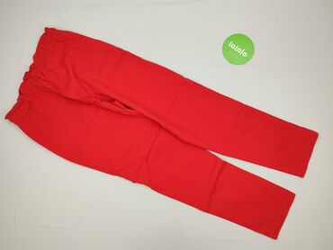 Czerwone damskie spodnie typu paperbag z paskiem - Krój: luźny w biodrach, zwężane nogawki 7/8 z podwiniętym dołem - Stan: wysoki, marszczona talia - Zapięcie/pasek: pasek z materiału przewlekany ...