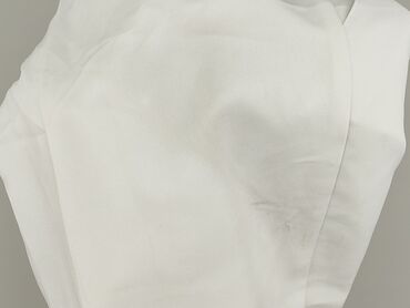 Białe damskie spodnie z wysokim stanem i prostą, lekko zwężaną nogawką. Wykonane w 100% z poliestru (Made in England) – tkanina gładka, nieelastyczna, łatwa w pielęgnacji. Przód z zaszewkami i wsuwanymi kieszeniami bocznymi, z tyłu elastyczna guma w pasie dla wygodnego dopasowania. Długość do kostek. Na metce rozmiar 20 (proszę sprawdzić wymiary własne – krój obszerny). Na jednym z paneli widoczne niewielkie przybrudzenie/ślady użytkowania – pokazane na zdjęciu.
