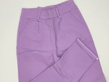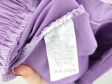Liliowe spodnie damskie typu wide leg - Kolor: pastelowy fiolet (lila) - Fason: szerokie nogawki, prosta linia; długość pełna - Pas: elastyczna guma + troczki do regulacji - Materiał: 50% polieste...
