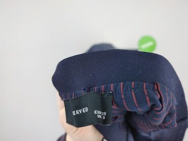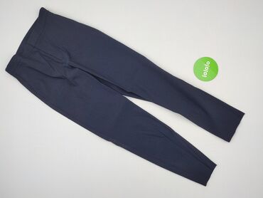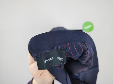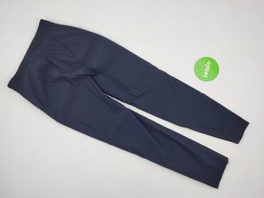Damskie spodnie materiałowe w kolorze granatowym z drobnym, regularnym mikrowzorem (kropki). Klasyczny, elegancki krój z wąską nogawką, szlufkami na pasek i skośnymi kieszeniami z przodu. Miękki, e...