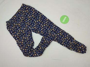 Damskie spodnie w kwiaty, rozmiar L/XL - Fason: lekkie, luźne spodnie z gumką w pasie i przy nogawkach (ściagacze), wygodny krój typu jogger/boho. - Wzór i kolor: granatowe tło w drobny, biały mot...