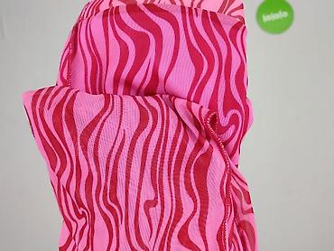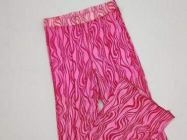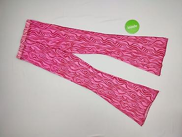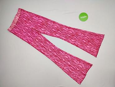 Różowe spodnie damskie SnSsy, rozmiar L - Fason: dzwony/lekko rozszerzane nogawki - Wzór: faliste, abstrakcyjne linie w odcieniach różu i czerwieni, efekt „psychedelic” - Materiał: cienka, półprze...Stan: