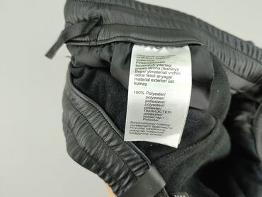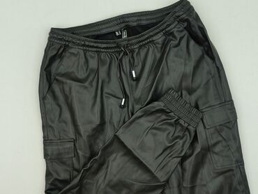 Damskie spodnie jogger marki SHE - Kolor: czarny - Materiał: 95% poliester, 5% elastan (metka ze składem na zdjęciu) - Rozmiar z metki: 40 - Fason: joggersy z lekko połyskującą, skórzaną w dotyku ...