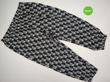 - Krój: swobodne, zwężane nogawki; dół i pas na elastycznej gumie