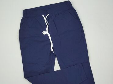Damskie spodnie sportowe, rozmiar L - Kolor: granatowy z szarymi lampasami po bokach i cienką czerwono‑różową lamówką - Krój: proste nogawki, średni stan - Talia na elastycznej gumie dla wygody - ...