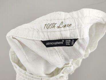 Białe damskie spodnie 3/4 z lnu – Atmosphere - Materiał: 100% len (metka “100% Linen”) - Kolor: biały - Krój: nogawki 3/4, proste - Stan zapinania: suwak + haftka z przodu - Dodatkowe dopasowanie:...