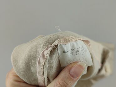 Damskie spodnie lniano‑bawełniane, beżowe (jasny melanż) - Fason: proste nogawki, wysoki stan, zakładki z przodu - Zapięcie: guzik plus zamek, szlufki na pasek - Kieszenie: 2 przednie skośne - Tka...