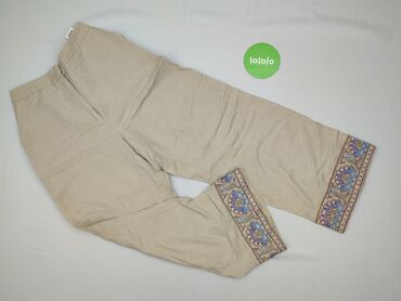 Szare damskie spodnie marki Reserved, wykonane z lnu, w rozmiarze 38. Model charakteryzuje się prostymi nogawkami z możliwością regulacji szerokości u dołu za pomocą wiązań, co pozwala na dopasowan...