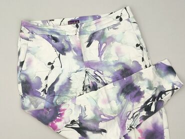 Damskie spodnie w roślinny wzór - Kolor: biały w granatowo-niebieski, akwarelowy print roślinny (gałązki, listki, jagody) - Krój: długie nogawki, średni stan, z szlufkami w pasie - Zapięcie: zamek...