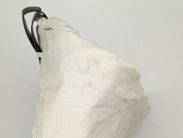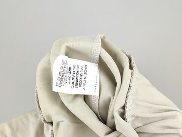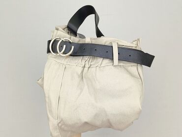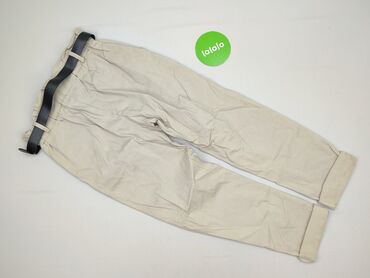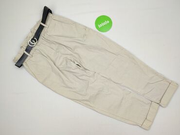 Spodnie damskie beżowe z paskiem - Krój: proste nogawki, wysoki stan z marszczoną gumką - Pasek: dołączony, szeroki, z geometrycznym wzorem (przewlekany w szlufkach) - Kieszenie: dwie boczne - Mat...