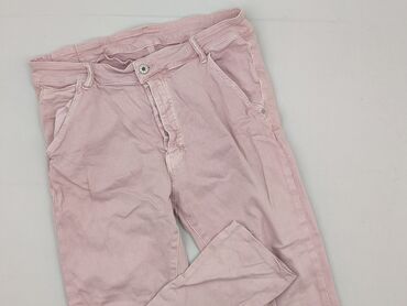 Damskie spodnie materiałowe w kolorze jasnego różu - Fason: zwężane nogawki, zakładki z przodu, średni stan - Zapięcie: guzik + zamek błyskawiczny - Pas: szlufki na pasek - Kieszenie: 2 boczne; z ...