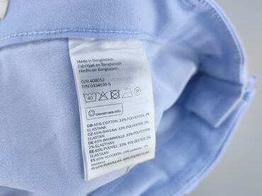 Granatowe spodnie H&M – damskie, rozmiar EU 38 - Krój: klasyczne chinosy, zwężane nogawki - Talia: standardowa, szlufki na pasek - Zapięcie: zamek błyskawiczny + guzik - Kieszenie: dwie wpuszczane...