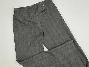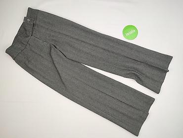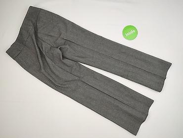 Damskie spodnie materiałowe w odcieniu ciemnej szarości z delikatnym, drobnym mikrowzorem. Klasyczny, elegancki fason z prostą, lekko rozszerzaną nogawką – idealne do biura i na formalne okazje.