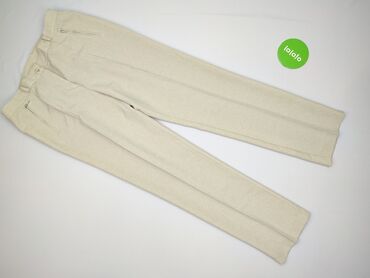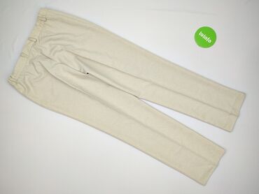 Damskie spodnie materiałowe w kolorze jasnego beżu/ecru. - Fason: prosta nogawka, lekko wysoki stan - Rozmiar z metki: 40 - Zapięcie: potrójny guzik z przodu + zamek - Szlufki na pasek - 2 kieszen...