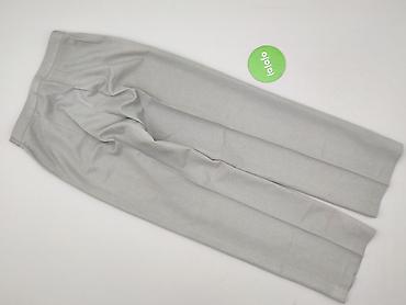 Damskie spodnie materiałowe, kolor jasnoszary. Elegancki, klasyczny krój z prostą nogawką w kant. Zapinane na guzik i zamek z przodu. Minimalistyczne wykończenie bez widocznych kieszeni z przodu; gładki tył. Subtelna, drobna faktura tkaniny.