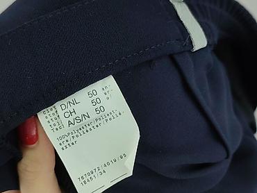 Granatowe spodnie damskie Malooka, rozmiar 42. - Fason: zwężane nogawki (slim/tapered), średni stan - Zapięcie: podwójna haftka + zamek (kryte) - Kieszenie: dwie skośne z przodu, jedna tylna wpusz...