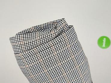 - Wzór: drobna krata (glen check) w odcieniach czerni, bieli i subtelnego beżu