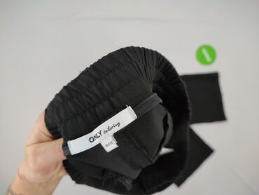 Czarne spodnie damskie House Music, rozmiar S - Fason: zwężane nogawki, klasyczny stan - Nogawki z metalowymi suwakami przy kostkach - Szlufki na pasek - Kieszenie z przodu; z tyłu atrapy kieszeni...