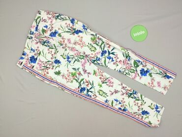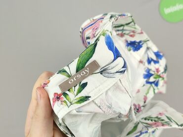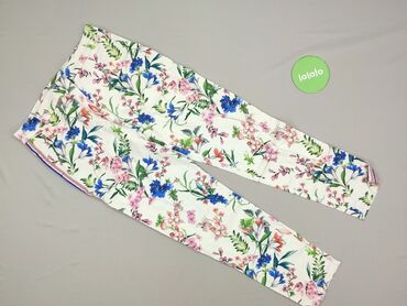 Spodnie damskie Orsay - Model: długie, proste nogawki - Wzór: granatowe w duże białe kwiaty (grafika line‑art) - Zapięcie: guzik i zamek z przodu - Kieszenie: dwie z przodu, z tyłu atrapy listewko...