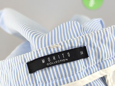 Spodnie damskie Mohito - Model: cygaretki z kantem - Kolor: jasny błękit (baby blue) - Rozmiar z metki: 38 - Fason: średni stan, zwężane nogawki - Pasek: w zestawie wąski pasek w tym samym kolorze...