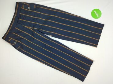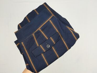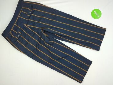 Spodnie damskie w paski - Kolor: granatowy z białymi, pionowymi paskami - Krój: swobodne, lekko zwiewne nogawki; długość pełna - Talia: elastyczna guma ze zdobnymi, podwójnymi paskami - Kieszenie:...