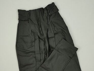 Czarne damskie spodnie z wysokim stanem typu paper bag. - Fason: zwężane nogawki, wysoki stan z marszczoną, falbanową talią - Zapięcie: guzik i suwak z przodu - Pasek: materiałowy, wiązany, w szlu...