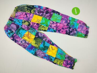 Damskie spodnie TU – rozmiar 14 (UK) - Krój: luźne, długie nogawki - Wzór: patchwork/boho z motywami kwiatowymi; odcienie turkusu, fioletu, różu, beżu i bieli - Talia: elastyczna gumka + sznurek d...
