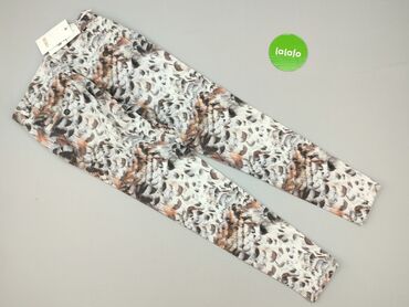 Spodnie damskie Resus, rozmiar S - Fason: proste nogawki, delikatnie rozszerzane ku dołowi - Wzór: czarno-biały, abstrakcyjny/psychedelic, przyciągający wzrok - Tkanina: elastyczna, fakturowana (l...