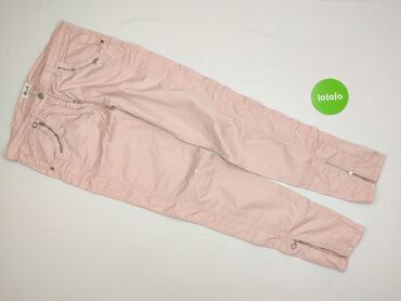 Różowe spodnie damskie – rozmiar 38 - Krój: slim/zwężane nogawki - Zapięcie: suwak + guzik, szlufki na pasek - Kieszenie: 5 (dwie z przodu + mała bilonówka, dwie z tyłu) - Materiał: 97% bawełna, 3...