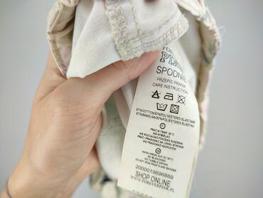 Różowe spodnie damskie F&F - Kolor: pudrowy róż - Fason: klasyczny, z pięcioma kieszeniami (dwie z przodu, mała kieszonka zegarkowa, dwie z tyłu) - Zapięcie: suwak + guzik - Szlufki na pasek - Mat...