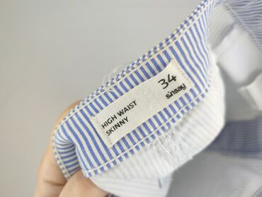 Spodnie damskie Sinsay - Model: rurki/skinny - Wzór: drobne paski w kolorze błękitno-białym (seersucker/„pinstripe”) - Stanowiące: klasyczny 5‑kieszeniowy krój – dwie kieszenie z przodu + kieszonk...