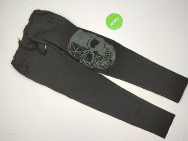 - Detal: duży geometryczny motyw czaszki z drobnych dżetów po jednej stronie nogawki