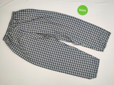 Spodnie damskie w kratę - Kolor: jasny błękit z nadrukiem w dużą kratę (czarne i szare linie) - Fason: proste nogawki, stan średni, komfortowy krój - Pas: elastyczna gumka na całej długości - Kies...