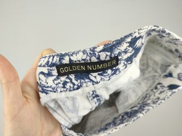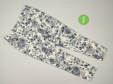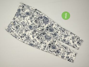 Spodnie damskie MOODO – granatowe w biały, kwiatowo‑liściasty print - Fason: rurki/nogawka zwężana - Wzór: biały, szkicowy motyw kwiatów i liści na granatowym tle - Materiał: 97% bawełna, 3% elast...