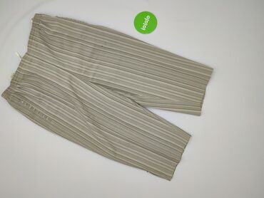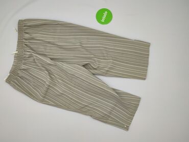 Damskie spodnie BETTY, rozmiar 46 - Krój: proste, nogawki 7/8 (culotte) z szeroką linią - Talia: elastyczna guma z troczkami do regulacji - Wzór: pionowe paski w odcieniach szaro‑zielonych i bieli...Stan: