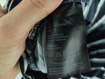 Damskie spodnie H&M - Rozmiar: EU 34 (US 4, CA 4, MX 4; na metce także CN 160/64A) - Krój: dopasowane, nogawki zwężane - Wzór: geometryczny, czarno‑biały (regularny nadruk na całej powierzchni) - ...