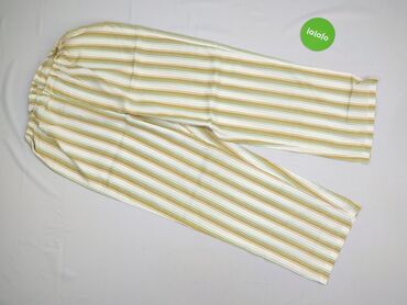 Lniane spodnie w paski - Krój: proste nogawki, lekko zwężane ku dołowi - Wzór: wąskie pionowe paski w odcieniach bieli i beżu/brązu - Talia: elastyczna gumka + sznurek do regulacji - Zapięcie: bra...Stan: