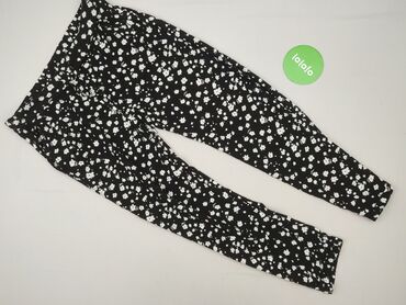 Czarne damskie spodnie w białe kwiaty - Krój: luźny, nogawki zwężane ku dołowi - Pas: szeroka, marszczona guma zapewniająca wygodne dopasowanie - Kieszenie: dwie boczne - Wzór: kontrastowy, biały ...Stan: