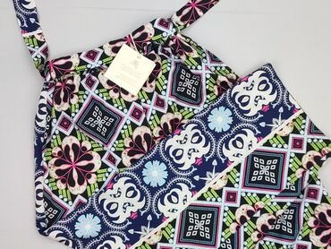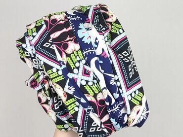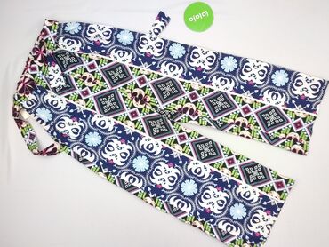 Spodnie damskie EXHIBIT - Fason: luźne, proste nogawki - Wzór: etniczny/geometryczny w odcieniach granatu, niebieskiego, bieli, czerni i pomarańczu - Materiał: 100% poliester (lekki, zwiewny) - Ta...Stan: