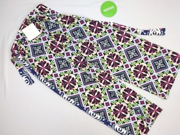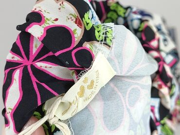 Spodnie damskie z lekkiego, lejącego materiału, z szeroką nogawką. - Krój: proste, luźne nogawki; talia na wygodnej, szerokiej gumie. - Wzór: duży, dekoracyjny print kwiatowo‑ornamentalny w odcieni...