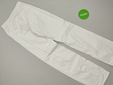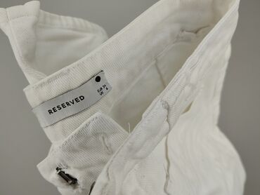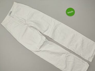 Białe spodnie damskie Reserved - Rozmiar: EUR 36 (UK 8) – na metce - Krój: zwężane nogawki - Stan talii: średni - Pas: elastyczny ściągacz w granatowo–żółto–białe paski - Zapięcie: imitacja rozpor...