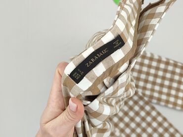 Spodnie damskie Zara Basic w brązowo-białą kratkę. Model o fasonie slim fit, dopasowany do sylwetki. Posiadają elastyczny materiał, który zapewnia komfort noszenia i swobodę ruchów. Idealne do stylizacji casualowych oraz eleganckich, dodając im charakteru.