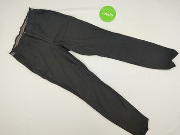 Spodnie damskie RESERVED, rozmiar S. - Kolor: biały w czarne, wąskie pionowe paski - Krój: zwężane nogawki, długość do kostki - Talia: wysoka z marszczeniem i ozdobnym paskiem do wiązania - Zapięc...
